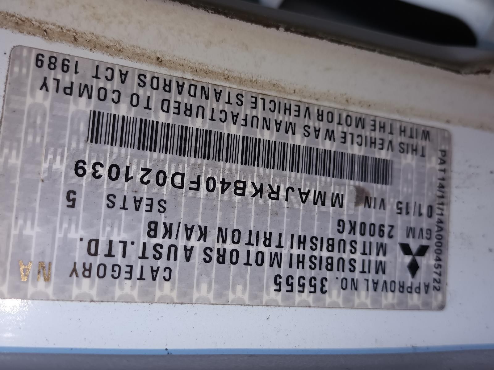 W-5331 MITSUBISHI TRITON MN 4D56 4WD GLX 2.5L DIESEL AUTOMATIC 2015