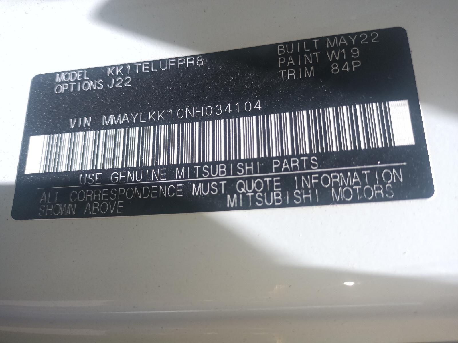 W-5335 MITSUBISHI TRITON MR 2.4L DIESEL AUTOMATIC 2WD SINGLE CAB 2022