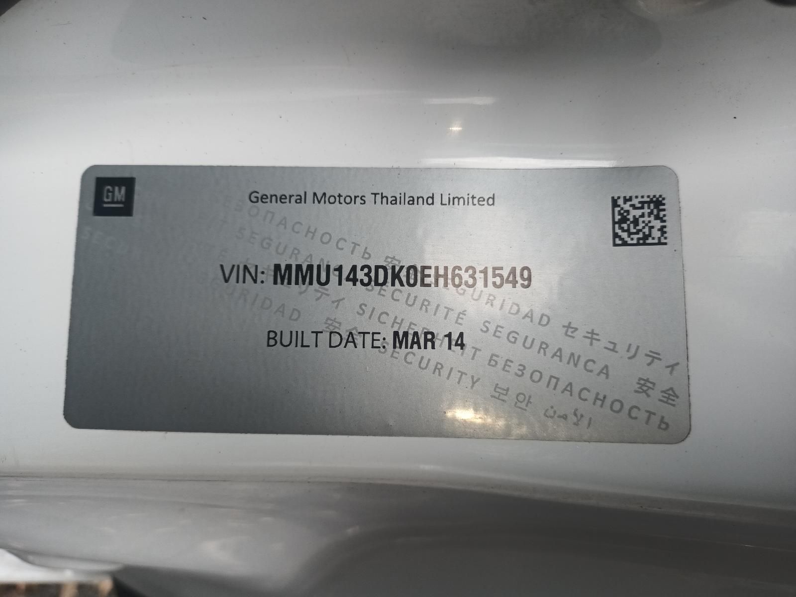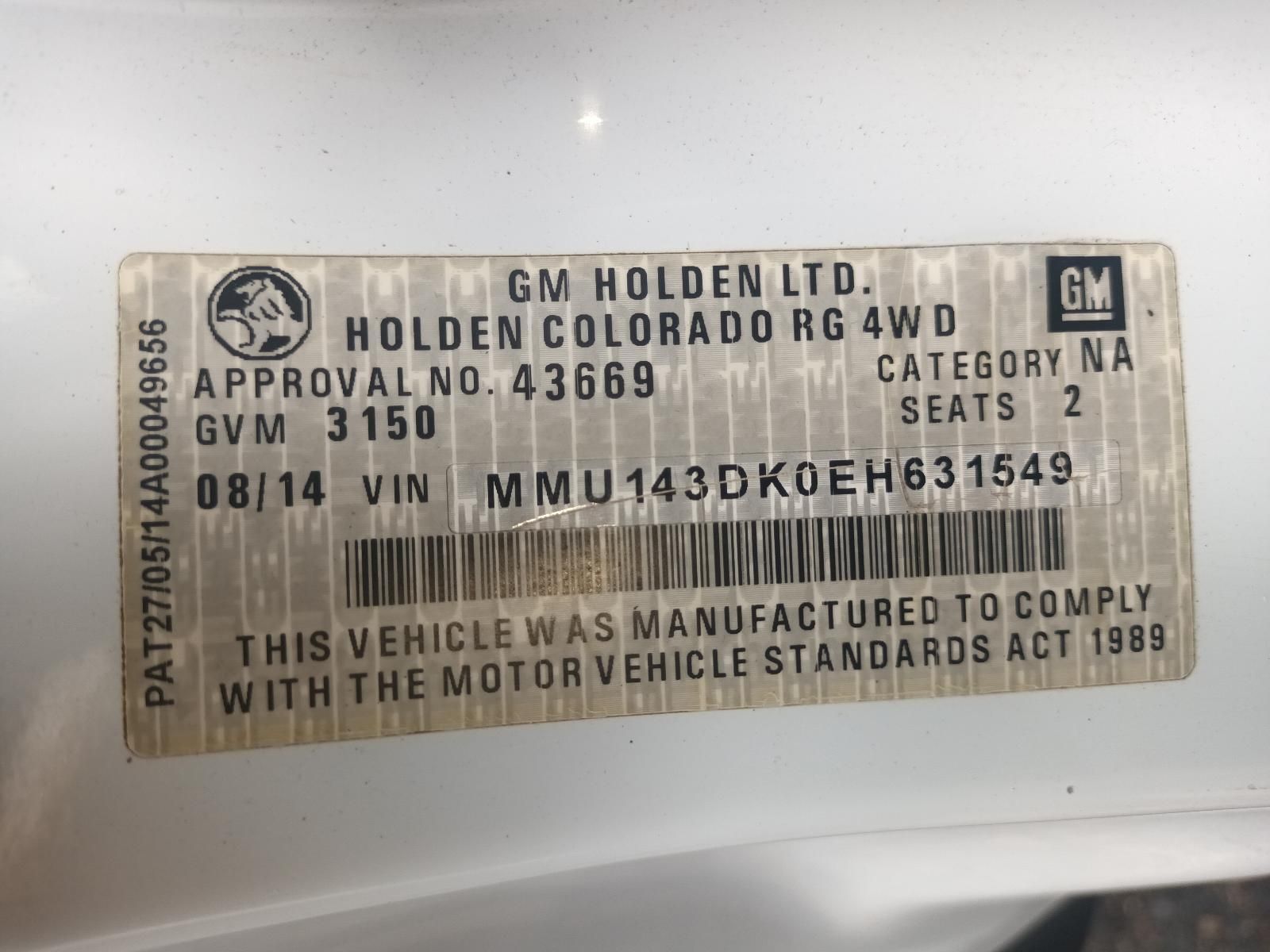 W-5349 HOLDEN RG COLORADO LX 2.8L DIESEL MANUAL 4WD SINGLE CAB 2014