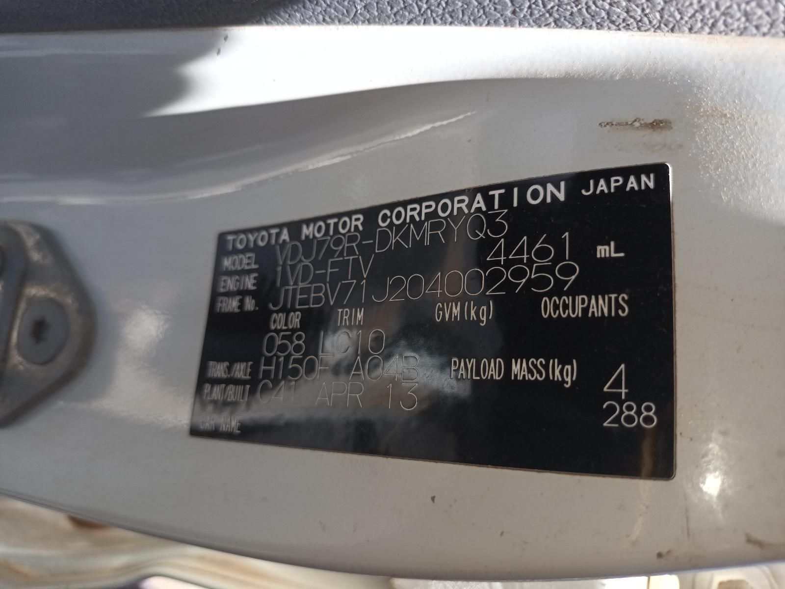 | Model: | LANDCRUISER VDJ79 | WORKMATE |