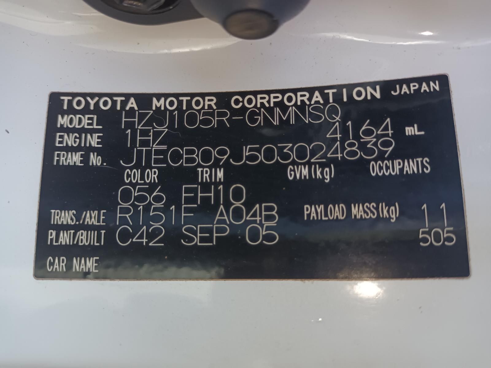 | Engine Type: | 1HZ 4.2L DIESEL | |