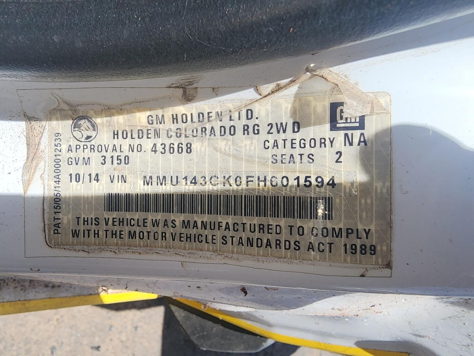 W-5378 HOLDEN RG COLORADO LX AUTOMATIC 2WD SINGLE CAB 2.8L DIESEL 2014